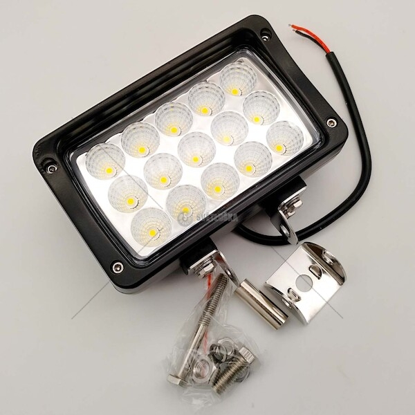Kvalitní pracovní obdélníkový LED světlomet, který se vyznačuje vysokým výkonem, který zajišťuje 15 LED diod. Tento horní pracovní světlomet vám zajistí výborný výhled.