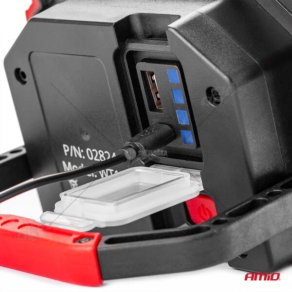 Popis produktu Pracovní LED lampa WT14 Pracovní reflektor se silným světlem umožňuje provádět potřebné opravy i pozdě večer. Prezentovaná dílenská lampa je vysoce kvalitní a výkonné COB LED světlo. Specifikace: Světelný tok: 1000lm Světlo 6500K (bílé) + režim maják červený Pracovní teplota: -45° - 50°C Životnost: 100 000 h Materiál: ABS + kov Typ světla: COB Pracovní doba při plném nabití: 4 hodiny Čas potřebný k úplnému nabití baterie: 2,5-3 hodiny Nabíjení: micro USB slot (kabel součástí balení) Ochrana proti přebití Pogumovaný kryt Indikátor nabíjení Odolné vůči nárazům, prachu a vlhkosti Napájení: USB kabel Počet tlačítek: 1 Materiál: ABS plast Zabudovaná rukojeť pro postavení / zavěšení 6 režimů svícení Dílenské svítidlo a další Dílenské svítidlo je ideální do profesionálních dílen, ale i domácích zahrad a domácí kutily. Zařízení dobře poslouží i při kempování jako doplňkové osvětlení. Vlastnosti produktu: vestavěná baterie výkonná lampa s maximálním jasem 1000 lumenů nabíjení lampy pomocí USB kabelu Těleso lampy odolné vůči nečistotám, vč. mastnota COB LED diody - řešení nové generace COB LED diody zaručují vyšší intenzitu a větší rovnoměrnost světla v porovnání s tradičními LED diodami. Jsou také jasnější, spotřebují méně energie a vyzařují kvalitativně lepší paprsek světla. Pro speciální úkoly Vyrobeno z nejkvalitnějších materiálů umožňují použití svítidla i v náročných podmínkách. Spolehlivý produkt určený pro náročné zákazníky.