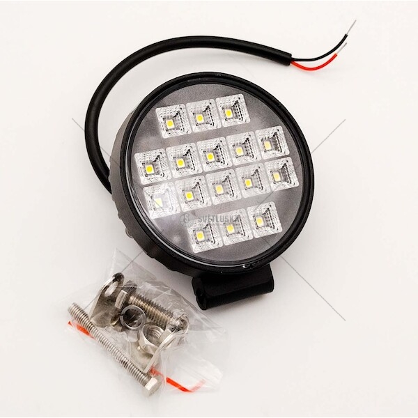 Moderní kulatý pracovní LED světlomet, který se vyznačuje vysokým výkonem. Vysoký výkon zajišťuje 16 LED diod se svítivostí skvělých 2400 LM. Nový typ LED diod zajišťuje výkon 27W a 48W jako u starších modelů LED pracovních světlometů. Tento horní pracovní světlomet vám zajistí výborný výhled. Na zadní straně má vypínač, který je velmi praktický pro jednoduché ovládání. Pracovní světlomet využijete na pracovních a zemědělských strojích stejně jako například OF-ROAD vozech, lodích atd.