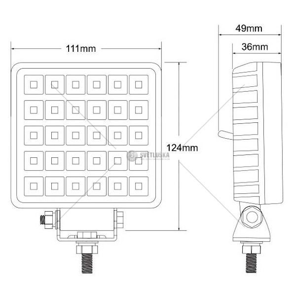 LED pracovní světlomet 30LED 30W čtverec 12/24V s vypínačem