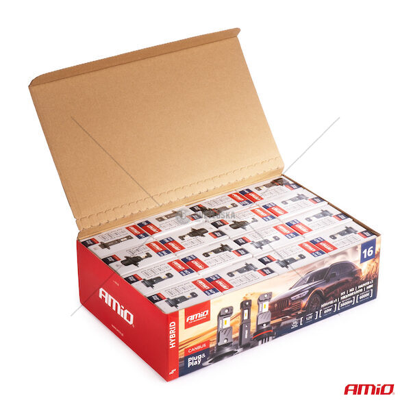 LED žárovky hlavního svícení Hybrid série H1 H3 H4 H7 HB3 HB4 6000K Canbus 16 sad AMiO-04120