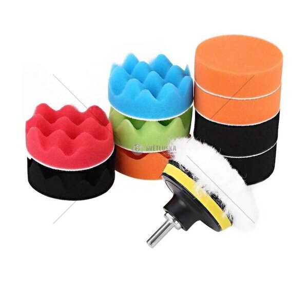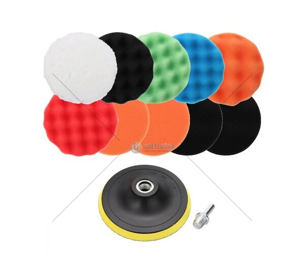 Sada 10 ks leštících kotoučů s nosičem kotoučů se suchým zipem a adaptér M10 se stopkou 8 mm. Uzpůsobené pro práci v amatérských i profesionálních podmínkách, mimořádně užitečné v lakovně i v domácí dílně. Jsou vhodné pro leštění různých lakovaných povrchů pomocí vrtačky/šroubováku. Použití kotouče různé tvrdosti a pevného montážního adaptéru zajistí dlouhodobé a bezproblémové používání sady.