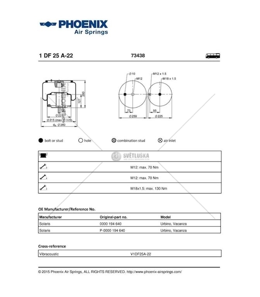Měch kompletní SOLARIS Phoenix 1DF25A-22