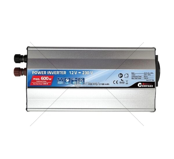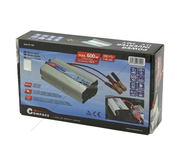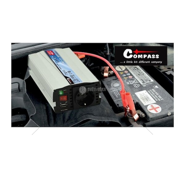 Měnič napětí 12/230V 600W + USB COMPASS