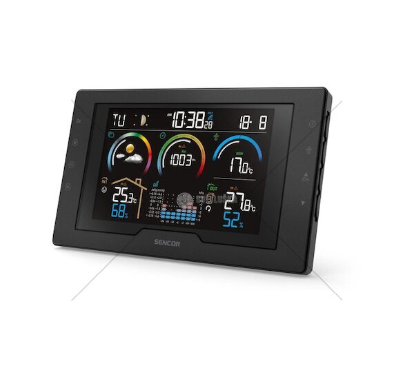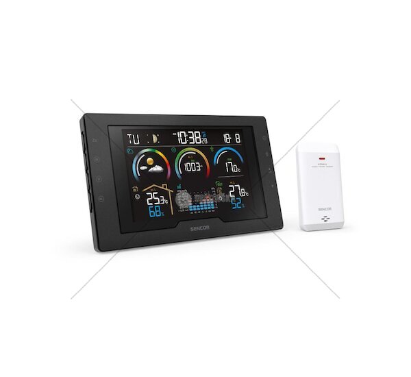 Meteorologická stanice SENCOR SWS 8000 poskytuje kompletní přehled o počasí díky barevnému LCD displeji s úhlopříčkou 5,7". Měří vnitřní i venkovní teplotu a vlhkost, zobrazuje barometrický tlak a předpovídá počasí na 12–24 hodin. Stanice podporuje až 8 bezdrátových senzorů, varuje před náledím a extrémními teplotami. V balení je bezdrátový snímač s dosahem 30 metrů, síťový adaptér a záložní baterie.