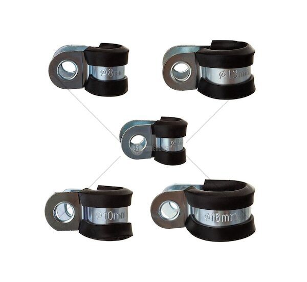 Montážní objímky M66554 v sadě 42 ks pěti různých průměrů pro bezpečné upevnění kabelů, trubek a hadic. Gumová vložka tlumí vibrace a chrání před opotřebením. Ideální pro automobilový, strojírenský a hydraulický průmysl.