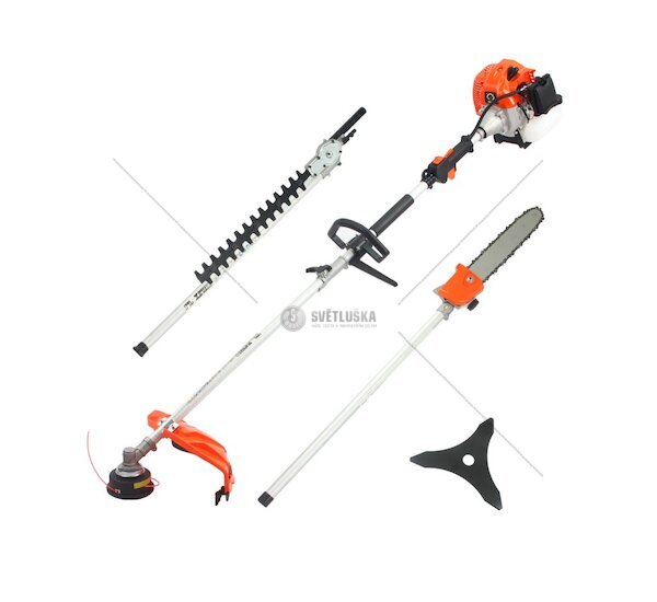 Multifunkční: křovinořez/vyžínač, plotostřih, vyvětvovací řetězová pila