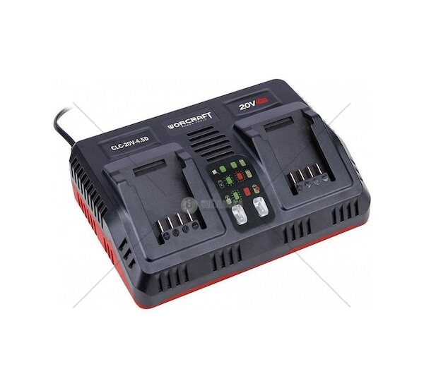 Nabíječka Worcraft CLC-20V-4.5D s funkcí rychlého nabíjení je určena k nabíjení dvou akumulátorů s kapacitou 2 Ah a výše série S20Li .