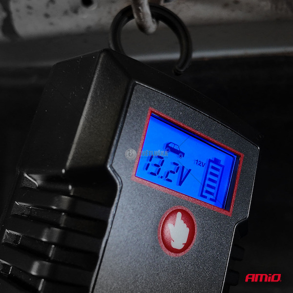 Digitální nabíječka AMiO PRO HOOK je moderní zařízení určené k nabíjení akumulátorů AGM, GEL a LiFePo4 (LFP). Díky maximálnímu nabíjecímu proudu 6 A a podpoře napětí 6 V a 12 V poskytuje rychlé, bezpečné a přesné doplňování energie akumulátorů v osobních vozidlech, motocyklech, lodích a menším profesionálním vybavení. Nabíječka s funkcí udržování napětí disponuje vestavěným hákem pro zavěšení pod kapotou. Obsahuje rychlospojku a další očkové konektory v balení. Je optimální pro nabíjení motocyklových akumulátorů a akumulátorů osobních aut s benzinovým nebo dieselovým motorem s malou kapacitou. Navíc má dedikovanou funkci nabíjení akumulátorů LFP. 6 univerzálních nabíjecích programů (STD, GEL, AGM) a dva dedikované (LFP) 6V 3A (STD, GEL, AGM) 6V 3A (STD, GEL, AGM) Nabíjení při nízké teplotě 6V 3A (LFP) 12V 3A (STD, GEL, AGM) 12V 3A (STD, GEL, AGM) Nabíjení při nízké teplotě 12V 6A (STD, GEL, AGM) 12V 6A (STD, GEL, AGM) Nabíjení při nízké teplotě 12V 6A (LFP) Optimální pro nabíjení akumulátorů: 6V 30Ah, 12V 30Ah, 12V 60Ah Nejdůležitější vlastnosti: Maximální nabíjecí proud: 6 A Podporované typy akumulátorů: AGM, GEL, LiFePo4 (LFP) Nabíjecí napětí: 6 V / 12 V Digitální displej pro úplnou kontrolu procesu nabíjení Automatické ukončení nabíjení po dosažení plné kapacity akumulátoru Ochrana před přebíjením, záměnnou polarity a zkratem Praktický závěsný hák (HOOK) usnadňující montáž v dílně nebo v garáži Digitální usměrňovač AMiO PRO HOOK 6/12V MAX 6A je spolehlivé, praktické a snadno použitelné zařízení, které zaručuje bezpečné a rychlé nabíjení akumulátorů, prodlužuje jejich životnost a zajišťuje plnou připravenost vozidel a zařízení k provozu.