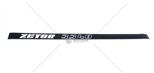 Před montáží očistěte a odmastěte montážní plochu. Umístěte nápis na levý bok traktoru a upevněte k existujícím montážním bodům nebo podle původního uchycení. Zkontrolujte zarovnání a pevnost uchycení po instalaci. V případě nejasností nebo specifických požadavků postupujte podle servisních instrukcí výrobce Zetor.