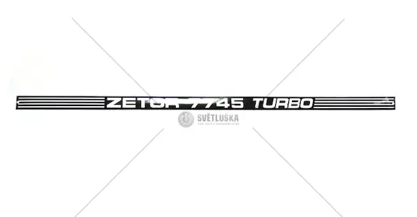 Nápis zadní 7745 turbo je určen pro traktory Zetor modelové řady 5211 až 7745. Tento díl slouží k vizuální identifikaci modelu traktoru a je umístěn na zadní části stroje. Kód produktu je 2400-7745T. Nápis je vyroben z odolného materiálu, který zajišťuje dlouhou životnost a odolnost vůči povětrnostním vlivům. Jeho instalace je jednoduchá a rychlá. Nápis 7745 turbo je vhodný pro renovaci a opravy traktorů Zetor. Díly Zetor jsou skladem a dostupné pro rychlé dodání. Tento nápis je specifický pro modely 5211, 5245, 6011, 6245, 6911, 7011, 7245, 7341, 7441, 7540, 7645 a 7745. Před instalací se ujistěte, že se jedná o správný nápis pro váš konkrétní model traktoru Zetor. Nápis zadní 7745 turbo je důležitým prvkem pro zachování originálního vzhledu a identifikace vašeho traktoru Zetor. Jeho výměna je doporučena při poškození nebo opotřebení původního nápisu. Nabízíme široký sortiment náhradních dílů Zetor, včetně nápisů, filtrů, motorových dílů a dalších komponentů. Všechny díly jsou kvalitní a spolehlivé, aby zajistily dlouhodobý a bezproblémový provoz vašeho traktoru Zetor. Nápis zadní 7745 turbo je dodáván bez montážního příslušenství. Pro správnou instalaci doporučujeme použít vhodné upevňovací prvky. Kód 24007745T jednoznačně identifikuje tento konkrétní nápis.