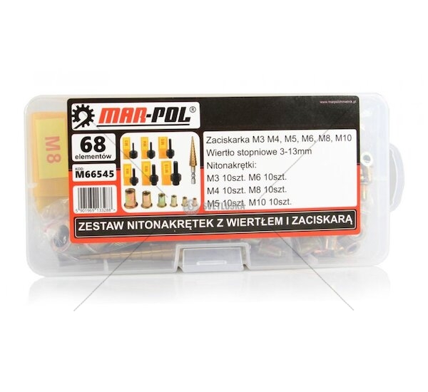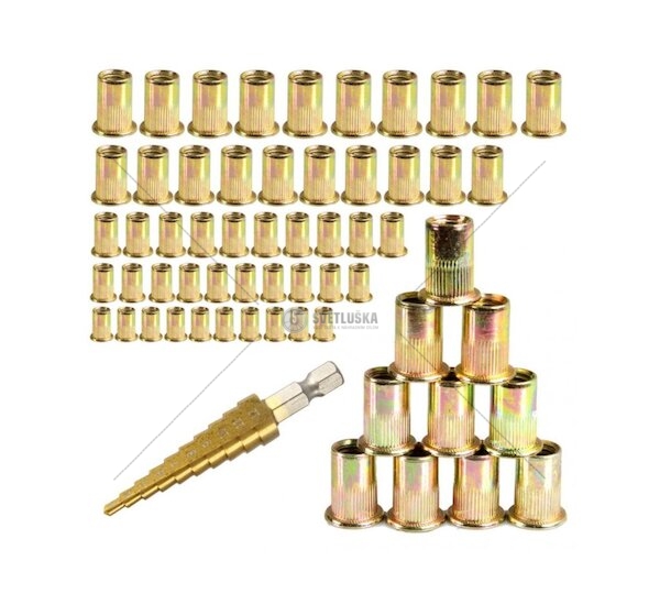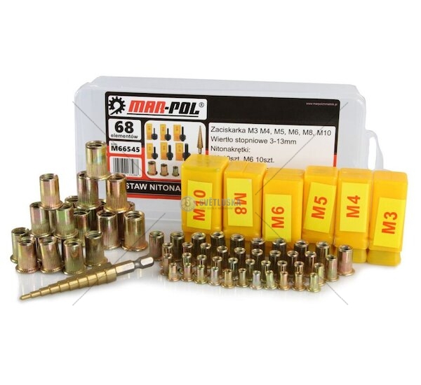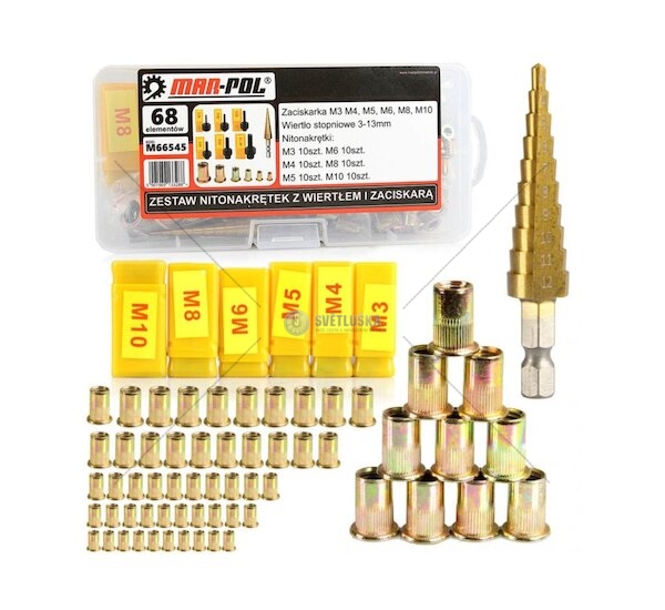 Nýtovací matice, nýtovací trny M3 - M10, se stupňovitým vrtákem, sada 68 ks MAR-POL