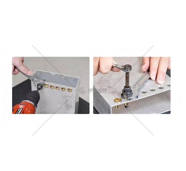 Sada ručních nýtovačů je ideálním zařízením pro použití na těžko dostupných nebo těsných místech. Tam, kde není možné použít tradiční nýtovače, se toto chytré zařízení snadno vejde. Umožňují vytvoření nýtového spojení s vnitřním závitem.
