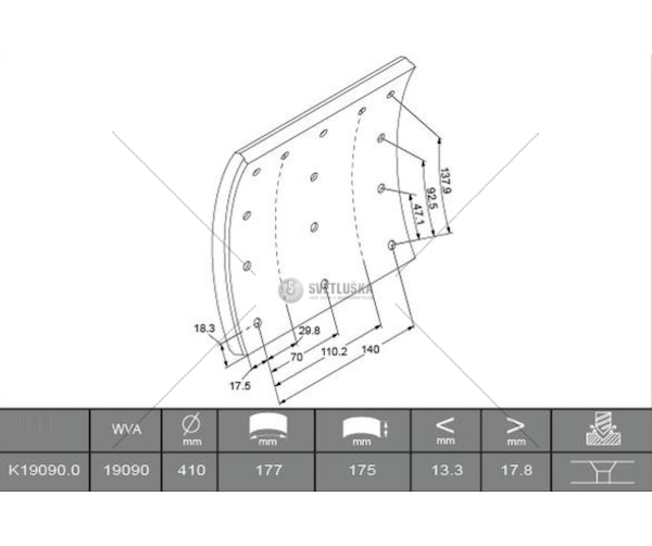 Obložení brzdové 19090.0 textar 175x410 volvo, rvi kerax 0030748_A