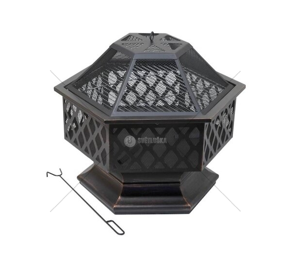 Přenosné ohniště na dřevo HEXAGON, se šestiúhelníkovou konstrukcí vhodné na terasy a zahrady.
