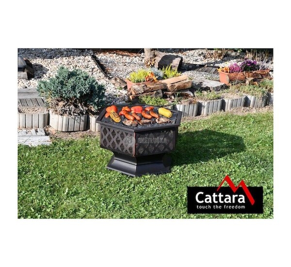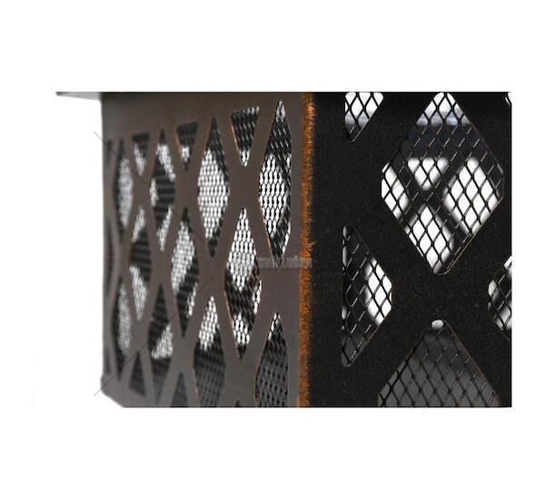 Konstrukce ohniště je vyrobena z kvalitní oceli s vysokoteplotním černým/měděným nátěrem s patinou. Pro grilování je ohniště opatřeno ocelovým roštem o rozměrech 61x53 cm.