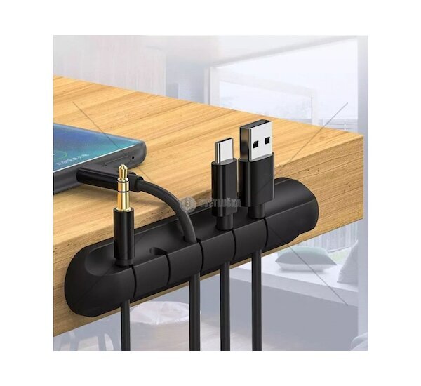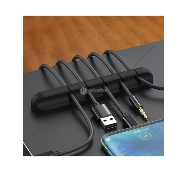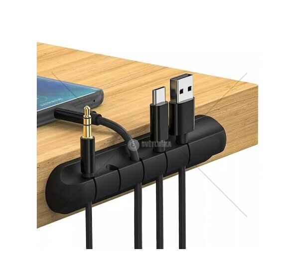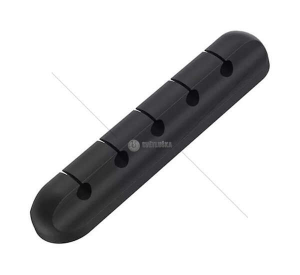 Samolepící věšák sloužící jako organizér až pro pět kabelů. Určené místo pro montáž je okraj stolu. Zabraňuje zamotávání drátů a usnadňuje jejich přehledné řazení.