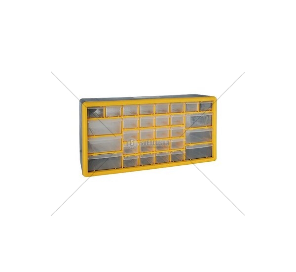 Organizér se 30 zásuvkami, 24 ks menšími a 6 ks většími, najde uplatnění v každé dílně, garáži nebo domácností, ale i obchodní společnosti.. S tímto organizérem budete mít vše na jednom místě.