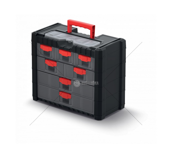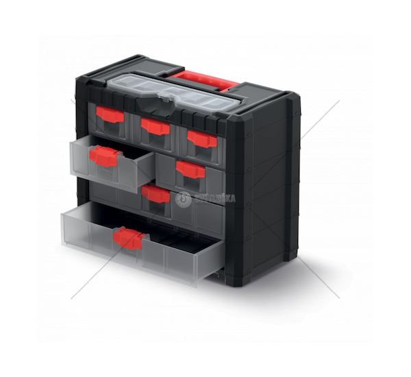 - Model Multicase Cargo KMC401 má 3 malé, 2 střední, 2 velké zásuvky a praktický organizér na menší předměty.