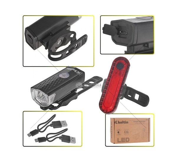Osvětlení jízdního kola, sada přední 900mAh, zadní 400mAh KELTIN