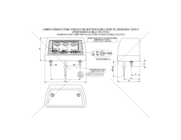 Důležité: 12/24V, 50CM kabel, výška 57MM, s poziční svítilnou, HOR79,TECHNICKÝ LIST