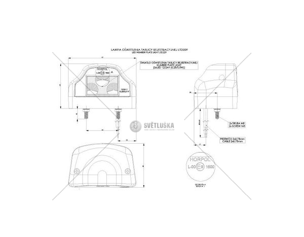 Důležité: 12/24V, 25CM kabel, výška 65MM, s poziční svítilnou, HOR47TECHNICKÝ LIST