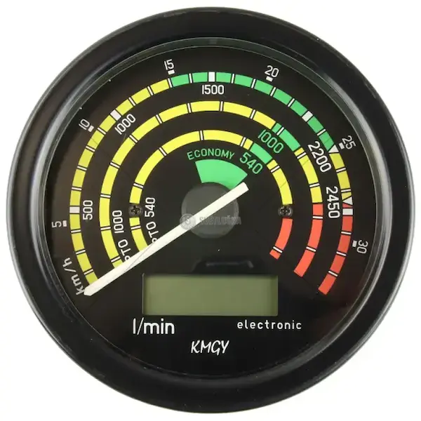 Otáčkoměr do 25km/h digitální 6245-5607 je přístroj pro měření a indikaci otáček hnací jednotky u traktoru. Zobrazuje okamžité otáčky a slouží k monitorování provozního režimu motoru při jízdě i při provozu pracovních nástrojů. Přístroj je koncipován pro montáž do přístrojové desky a pro připojení k existujícím snímačům otáček na vozidle, přičemž jeho použití je zaměřeno na řízené sledování pracovních otáček.