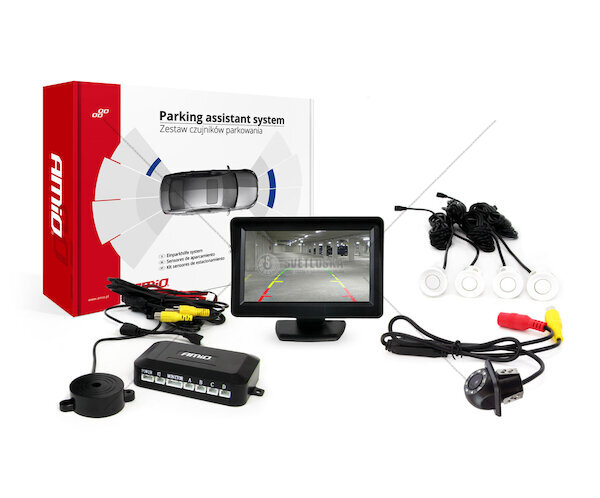 Parkovací asistent TFT01 4,3" s kamerou HD-305 LED 4 senzory bílé