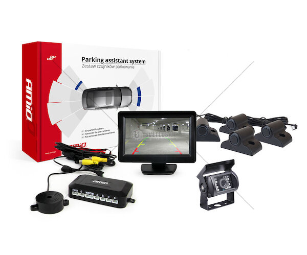 Parkovací asistent TFT01 4,3" s kamerou HD-501-IR 4 senzory černá Truck