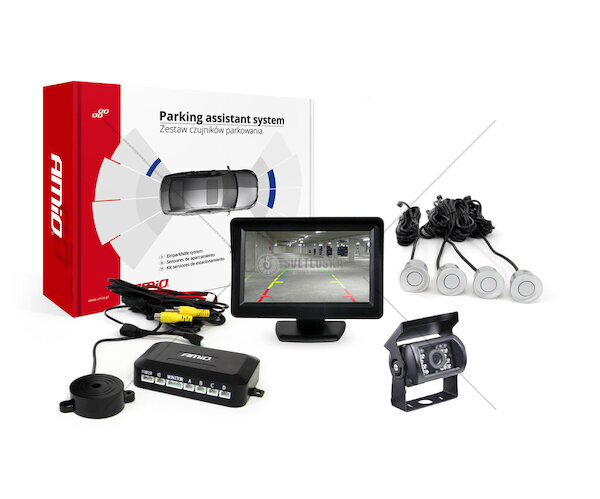 Parkovací asistent TFT01 4,3" s kamerou HD-501-IR 4 senzory stříbrné