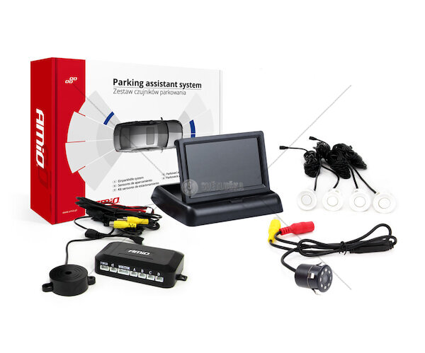 Parkovací asistent TFT02 4,3" s kamerou HD-307-IR 4 senzory bílé
