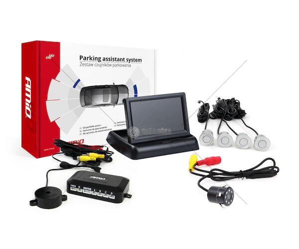 Parkovací asistent TFT02 4,3" s kamerou HD-307-IR 4 senzory stříbrné