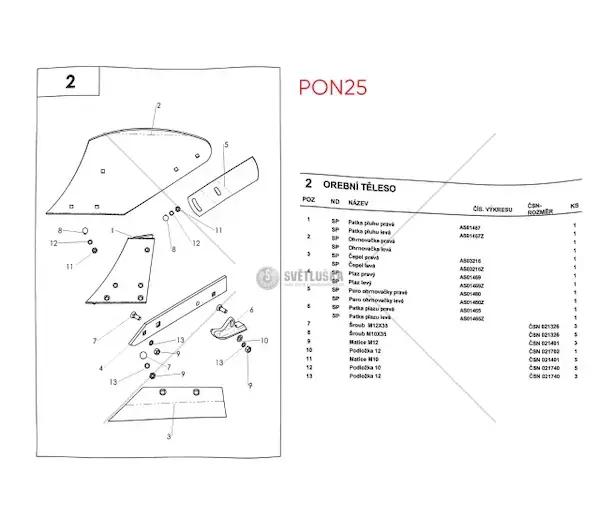 Patka pluhu (pravá - levá) pro pon-25 | PON25007