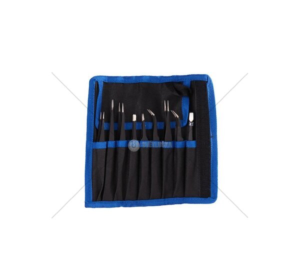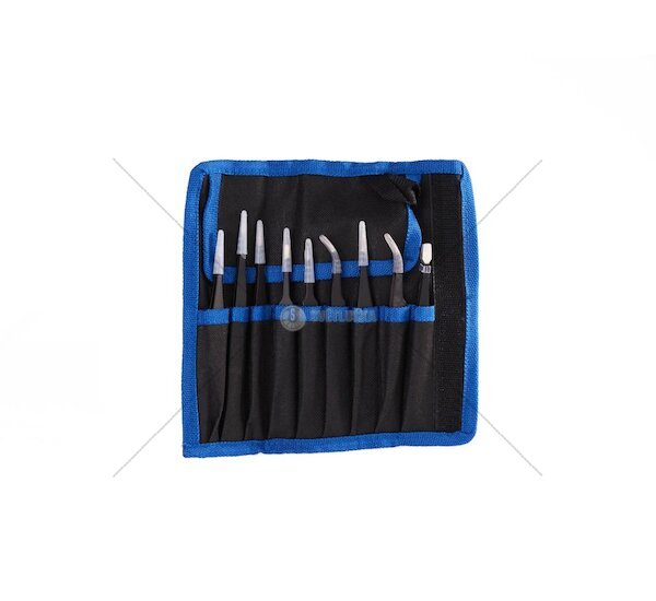 Všechny pinzety jsou uloženy v praktickém textilním pouzdře, které nejen chrání nástroje před poškozením, ale také umožňuje jejich snadnou organizaci a přepravu. Pouzdro zajišťuje, že pinzety zůstanou čisté a připravené k použití.