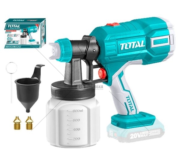 Pistole stříkací na barvu AKU, 20V Li-ion, 2000mAh, bez baterie a nabíječky TOTAL