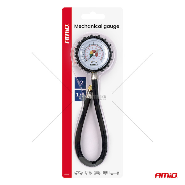 Pneuměřič s hadicí 30 cm 12 bar AMiO-04468