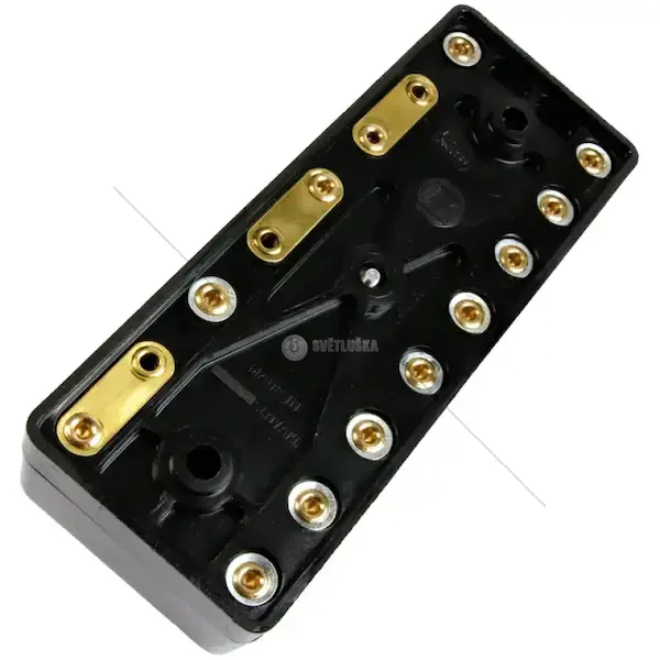 Pojistková skříňka určená pro elektrické rozvody traktoru, identifikovaná kódem 97-7305. Produkt je 8-pólový modul o délce 13 cm, konstruovaný pro instalaci do elektrických systémů strojů Zetor 4911-6945. Popis zahrnuje základní určení a kompatibilitu: jedná se o rozvodnou jednotku pojistek pro trakční a pomocné obvody, která slouží k usnadnění připojení a výměny pojistek v servisních zásazích a při opravách. V souladu se vstupními údaji je součást určena výhradně pro aplikace uvedeného modelového označení; viz poznámka 'Díly na 4911-6945' pro přesné přiřazení. Dokumentace neuvádí materiálové ani konstrukční parametry, elektrické hodnoty ani certifikace; tyto údaje nejsou k dispozici a nejsou zde odhadovány. Popis je technický a faktický, zaměřený na identifikaci dílu, jeho základní konfiguraci a oblasti použití v souvislosti se stroji Zetor 4911-6945.