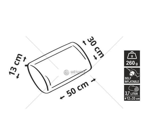 Rozměry 50 x 30 cm a výška 13 cm, dělají z polštáře pohodlný a příjemný doplněk pro kemping, zejména při přenocování ve spacím pytli. Polštář však může být využit i jako pohodlná, izolační podložka k sezení.