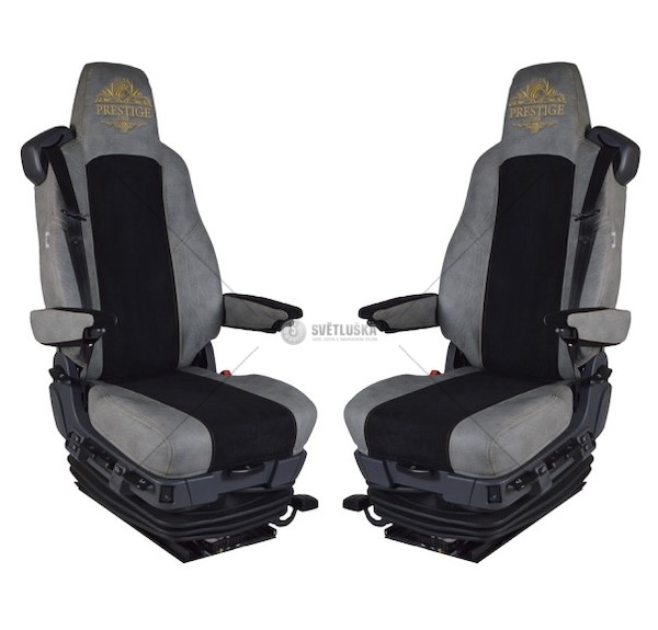 Důležité: Scania R 2013-, SCANIA S 2016- (letecká sedadla odpružené sedadlo spolujezdce) 2 pásy sedadlo řidiče odpružené premium, medium B, sedadlo spolujezdce odpružené premium, medium B šedá koženka/černý velur