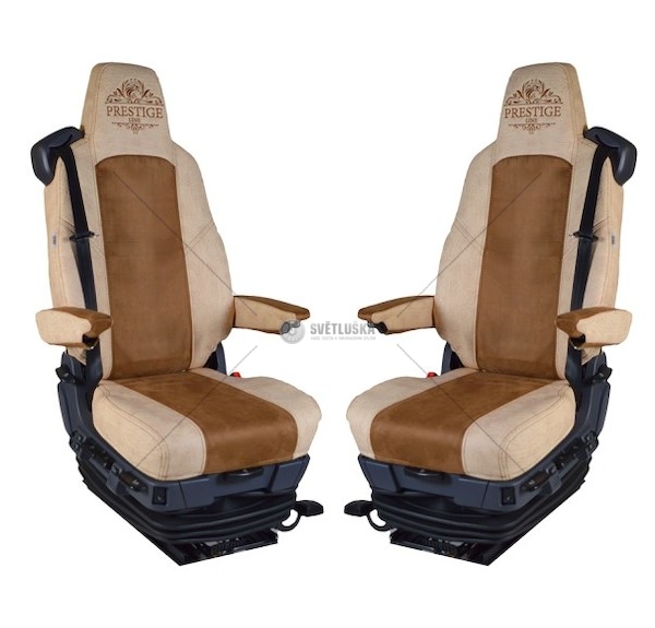 Důležité: Scania R 2013-, SCANIA S 2016- (letecká sedadla odpružené sedadlo spolujezdce) 2 pásy sedadlo řidiče odpružené premium, medium B, sedadlo spolujezdce odpružené premium, medium B béžová koženka/hnědý velur