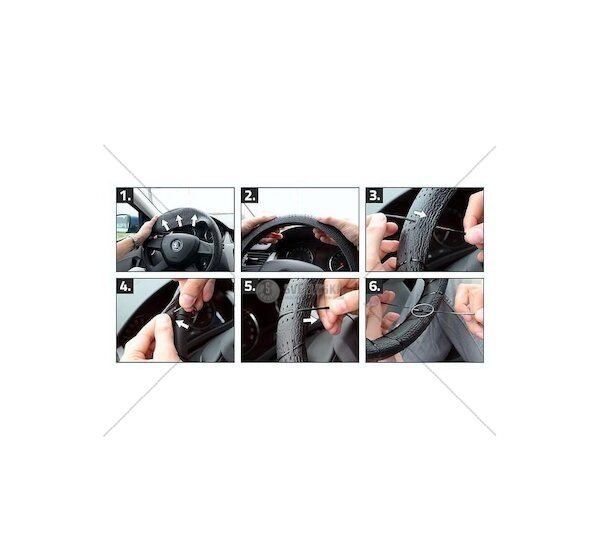 Potah je určen pro volanty osobních vozidel. Potah se připevní na volant tak, že se prstenec potahu nasadí na obvod volantu a přiloženou tkaničkou se obmotá dokola. Barva černá.
