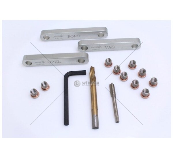 Přípravky na opravu závitů vodítek brzdičů M9x1,25mm na VAG, Opel, Ford, sada 16ks ASTA