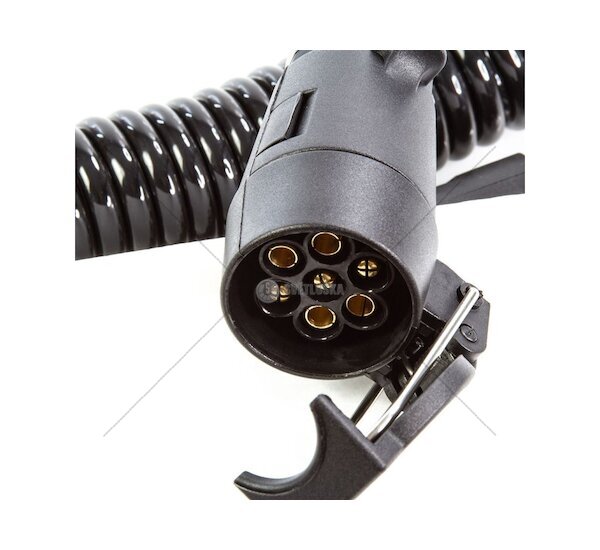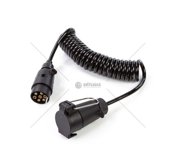 Spirálový prodlužovací kabel se 7pólovou zástrčkou (samec) a zásuvkou (samice) představuje spolehlivé řešení pro elektrické propojení přívěsů, návěsů, karavanů a další přípojné techniky. Kabel je určený pro 12V systémy a zajišťuje stabilní a bezpečné elektrické spojení pro osvětlení a signalizaci přívěsu.