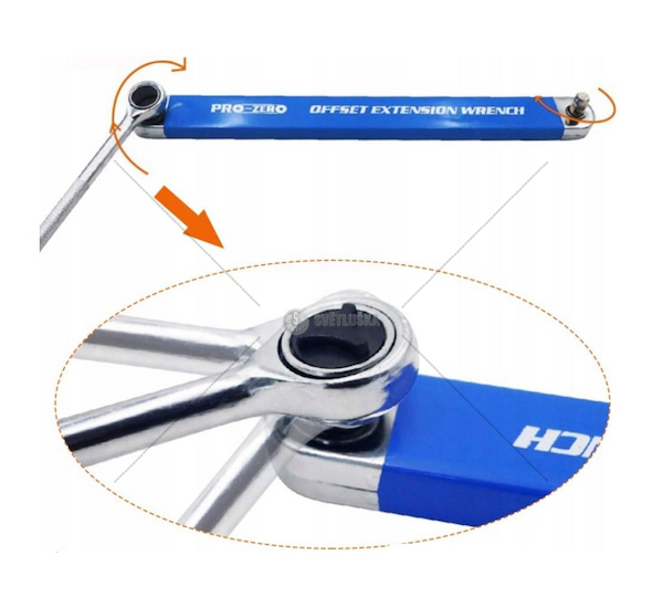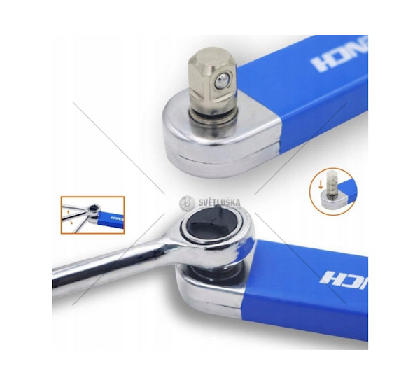 Prodlužovací ráčnový nástavec s adaptéry 1/2", 1/4" a 3/8" pro snažší přístup do úzkých a těžko přístupných míst.