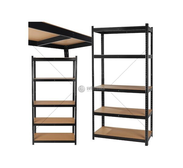 Robustní policový regál pro garáže, sklady, dílny nebo technické místnosti. Stabilní ocelová konstrukce tloušťky 0,9 mm v kombinaci s pevnými MDF deskami v tloušťce 5 mm poskytuje vysokou nosnost a dlouhou životnost. Každá z pěti polic unese až 265 kg, takže bez problémů pojme těžké nářadí, krabice, stroje nebo zásoby.