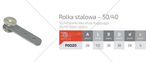 Rolna vozíku plachty ocelová 38 mm rovná PO020