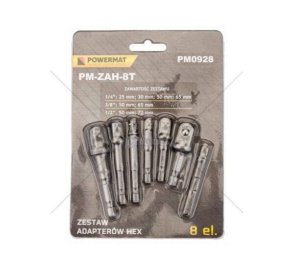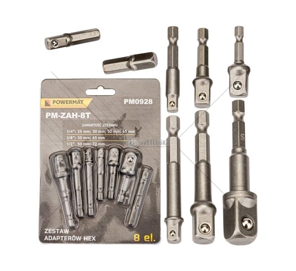 Sada adaptérů do vrtačky 1/2" 3/8" 1/4", 8ks, šestihran POWERMAT