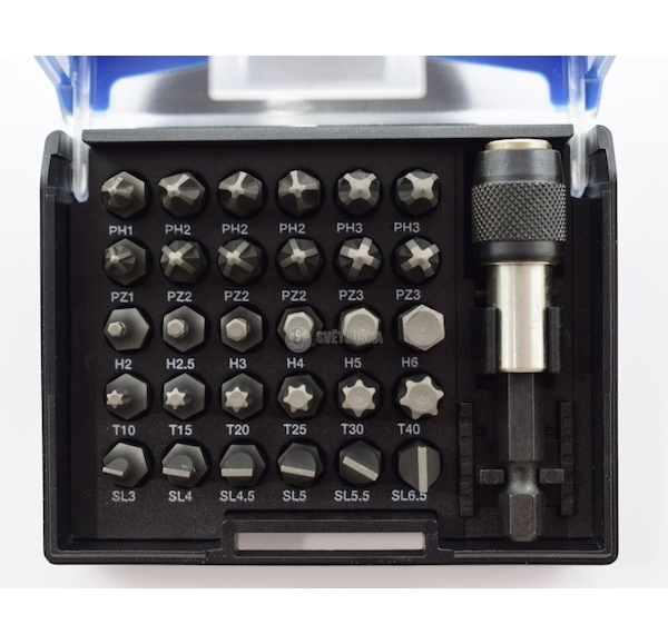 - Praktické úložné pouzdro – Umožňuje snadnou organizaci a přenos bitů.