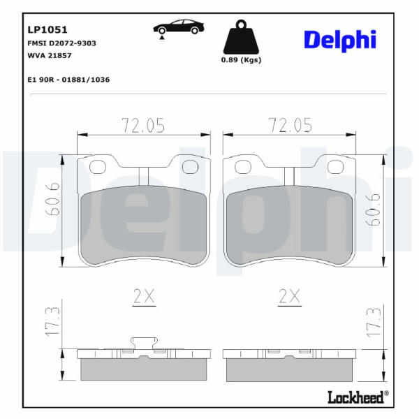 Sada brzdových destiček, kotoučová brzda DELPHI LP1051