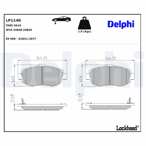 Sada brzdových destiček, kotoučová brzda DELPHI LP1140
